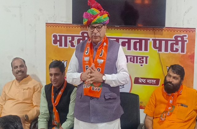 भीलवाड़ा । भारतीय जनता पार्टी के पूर्व प्रदेश अध्यक्ष एवं हरियाणा भाजपा के प्रदेश प्रभारी सतीश पूनिया और पंजाब हरियाणा के राज्यपाल गुलाबचंद कटारिया का अल्प प्रवास पर भीलवाड़ा आगमन पर भाजपा जिला कार्यालय पर जिलाध्यक्ष प्रशांत मेवाड़ा के नेतृत्व एवं विधायक उदयलाल भडाना, महापौर राकेश पाठक के सान्निध्य में स्वागत अभिनंदन किया गया।