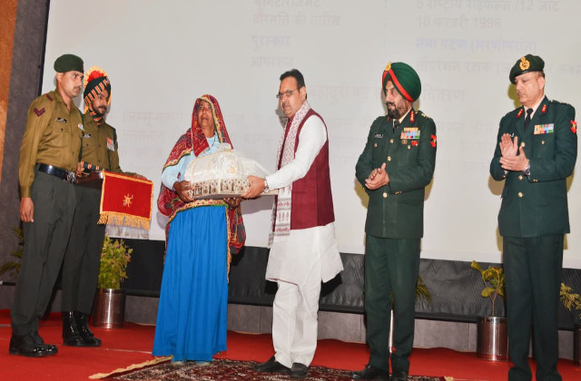 मुख्यमंत्री ने इस दौरान कीर्ति चक्र से सम्मानित (मरणोपरांत) नायक मेघ राज सिंह, सेना मेडल से सम्मानित (मरणोपरांत) हवलदार राम सिंह शेखावत, सेना मेडल से सम्मानित (मरणोपरांत) लांस नायक बंशीधर यादव की वीरांगनाओं का सम्मान किया। साथ ही, उन्होंने सेवानिवृत्त ब्रिगेडियर जीवन राजपुरोहित, सूबेदार अर्जुन सिंह राठौर, हवलदार मदन सिंह काजला को भी सम्मानित किया।