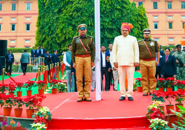 ध्वजारोहण के पश्चात मुख्यमंत्री भजनलाल शर्मा ने स्वतंत्रता सेनानियों और संविधान निर्माताओं को नमन करते हुए कहा कि भारत दुनिया का सबसे समृद्ध लोकतंत्र है। उन्होंने कहा कि हमारा संविधान विश्व का सबसे बड़ा लिखित संविधान है, जो देश की एकता, अखंडता और लोकतांत्रिक मूल्यों का आधार है। मुख्यमंत्री ने कहा कि देश की आज़ादी के लिए हमारे महापुरुषों ने अपना सर्वस्व न्यौछावर कर दिया। उन्हीं के त्याग और बलिदान के कारण आज हम सभी लोकतंत्र की खुली हवा में सांस ले पा रहे हैं।