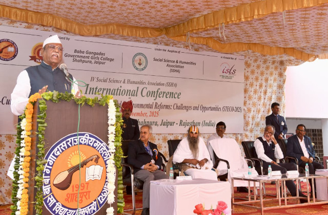 जयपुर। राज्यपाल हरिभाऊ बागड़े ने कहा कि भारतीय संस्कृति में जीवन के संतुलन और समन्वय पर विशेष ध्यान दिया गया है। शुक्रवार को शाहपुरा स्थित बाबा गंगादास राजकीय बालिका महाविद्यालय में आयोजित अन्तरराष्ट्रीय संगोष्ठी में उन्होंने 'सामाजिक—सांस्कृतिक परिवर्तन, तकनीकी प्रगति एवं पर्यावरणीय सुधार' पर अपने विचार व्यक्त किए।