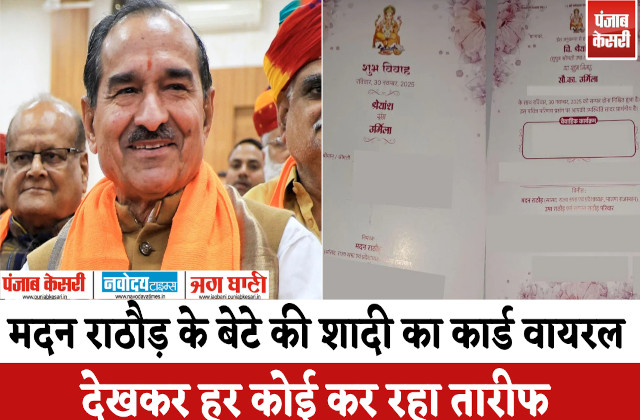 जयपुर। राजस्थान भाजपा के प्रदेशाध्यक्ष मदन राठौड़ के बेटे श्रेयांश की शादी होने जा रही है और उनकी शादी कार्ड बांटे जा रहे हैं। इसी बीच उनकी शादी का कार्ड इन दिनों सोशल मीडिया पर जबरदस्त वायरल हो रहा है। दरअसल, इस अनोखे शादी कार्ड ने खास संदेश दिया है जिसकी हर कोई हैरान हो रही है।