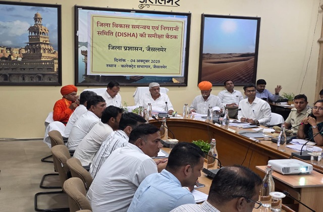 कलेक्ट्रेट परिसर स्थित डी.आर.डी.ए. सभागार में आयोजित बैठक में केंद्रीय मंत्री शेखावत ने जैसलमेर जिले में संचालित केंद्र सरकार की विभिन्न योजनाओं, परियोजनाओं, अभियानों और सामुदायिक विकास कार्यक्रमों की बिंदुवार समीक्षा की। इस दौरान अधिकारियों को विकास कार्यों की रफ्तार बढ़ाए जाने का निर्देश दिया। इस दौरान विधायक महंत प्रतापपुरी महाराज, जैसलमेर विधायक छोटू सिंह, जिला कलेक्टर प्रताप सिंह राठौड़, जिला प्रमुख प्रतापसिंह सोलंकी सहित संबंधित विभागों के अधिकारी और कई जनप्रतिनिधि भी मौजूद रहे।