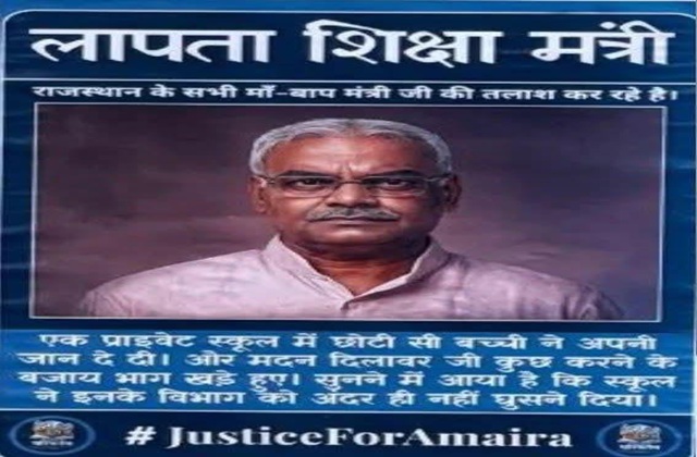 संयुक्त अभिभावक संघ के प्रदेश प्रवक्ता अभिषेक जैन बिट्टू ने कहा: “अमायरा सहित पिछले 39 दिनों में प्रदेश के 5 से अधिक मासूम बच्चों की जिंदगी खत्म हो जाने के बाद भी शिक्षा मंत्री का मौन रहना पूरे राजस्थान के अभिभावकों के साथ अन्याय है। यदि शिक्षा मंत्री आवाज उठाने वालों और पीड़ित परिवारों से भी दूरी बनाए रखें, तो यह स्पष्ट है कि निजी स्कूलों की लापरवाही पर रोक लगाने की सरकार के पास इच्छाशक्ति ही नहीं है। संयुक्त अभिभावक संघ परिवर्तन संस्था सहित प्रदेश के प्रत्येक अभिभावक और विद्यार्थी के साथ खड़ा है, और न्याय मिलने तक हमारा संघर्ष जारी रहेगा।”