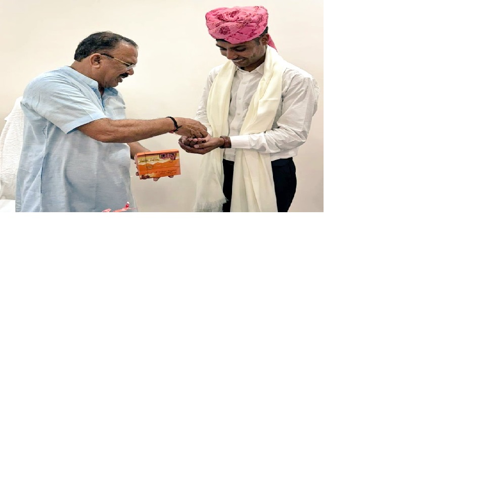 जयपुर। राजस्थान विधानसभा अध्यक्ष वासुदेव देवनानी ने राजस्थान प्रशासनिक सेवा परीक्षा-2023 में प्रथम स्थान प्राप्त करने वाले अजमेर जिले के ग्राम पंचायत कड़ैल निवासी कुशल चौधरी को गुरुवार को राजकीय आवास पर आमंत्रित कर बधाई एवं शुभकामनाएं दीं। देवनानी ने कुशल चौधरी को पुष्प गुच्छ भेंट कर, शाल ओढ़ाकर, साफा पहनाकर और मिठाई खिलाकर सम्मानित किया। देवनानी ने कुशल को उनके उज्ज्वल भविष्य के लिए शुभकामनाएं दी। देवनानी ने कहा कि कुशल जैसे युवाओं की नई पीढ़ी प्रशासनिक सेवा में नई ऊर्जा. पारदर्शिता और जनसेवा की भावना लेकर प्रदेश के विकास में अहम भूमिका निभाएगी।