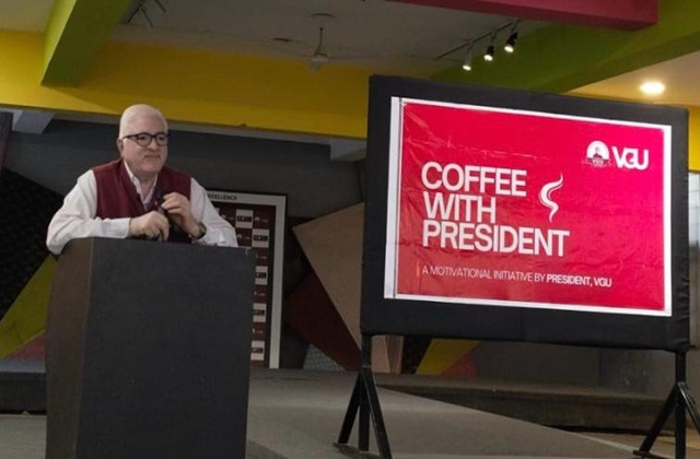 विवेकानंद ग्लोबल यूनिवर्सिटी में ‘कॉफी विद प्रेसीडेंट’ कार्यक्रम में प्राध्यापकों का सम्मान