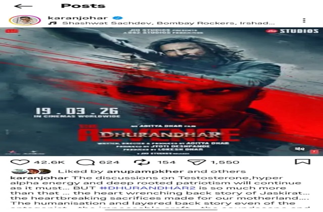 करण जौहर ने फिल्म ‘धुरंधर-2’ को लेकर सोशल मीडिया पर भी अपनी प्रतिक्रिया दी।