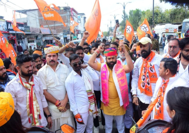 पाली में शिव सैनिकों ने निकाली भगवा रैली, धर्मसभा में संतों ने एकजुट रहने का दिया संदेश