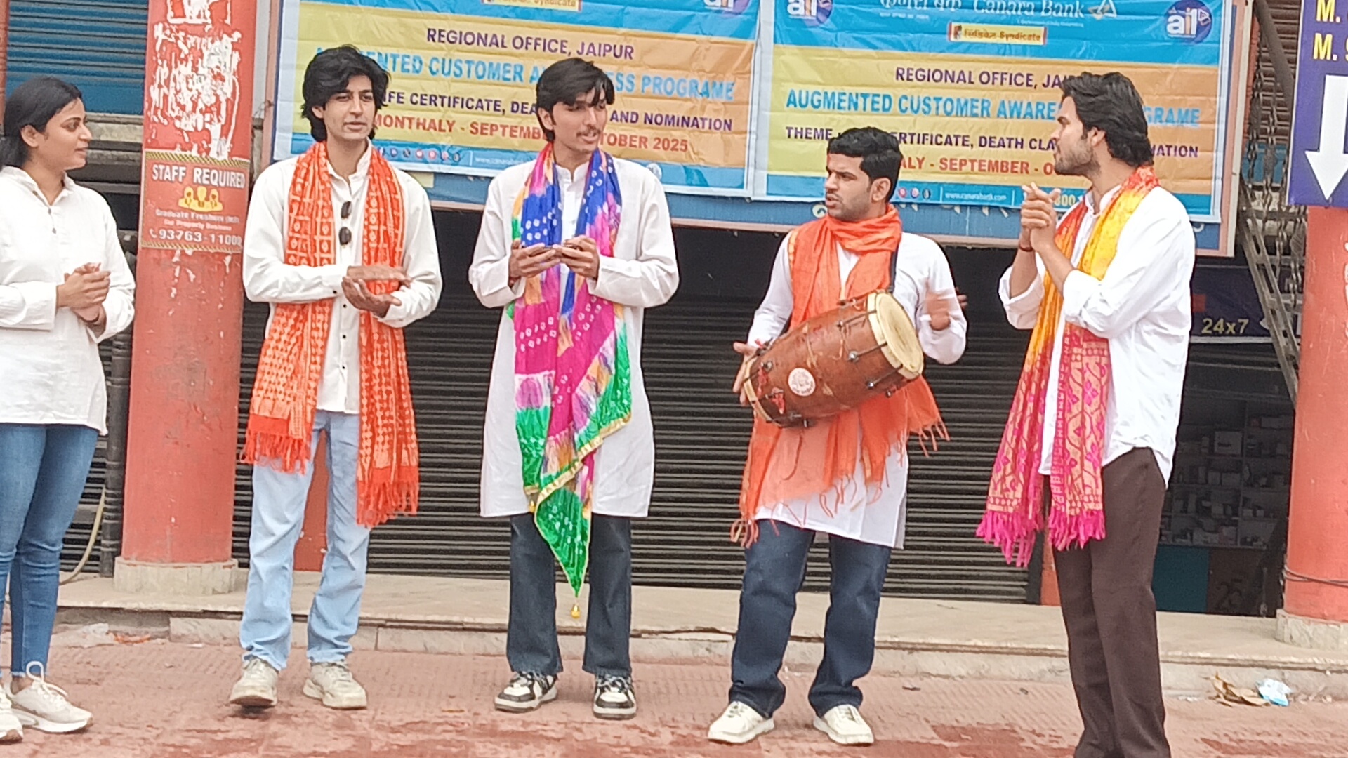 बैंकिंग से जुडी पेचीदगियों और नॉमिनी से जुडी जागरूकता को आम लोगों तक पहुंचाने के लिए जयपुर रंगमंच के कलाकारों ने नुक्कड़ नाटक के ज़रिए बेहद आसान अंदाज में समझाया। कैनरा बैंक की ओर से RBI की अवेयरनेस थीम पर आयोजित इस विशेष नुक्कड़ नाटक का शीर्षक था “चुटकी बजाओ, काम कराओ”। नाटक की निर्देशक सुप्रिया शर्मा ने बताया कि यह प्रस्तुति शक्ति पुंज सोसायटी के सहयोग से की गई, जिसमें नितिन सैनी, जय सोनी समेत कुल 8 कलाकारों ने भाग लिया।