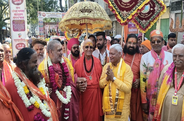 बुधवार प्रातः अयोध्यानगर (दूधाधारी मंदिर) से जब शोभायात्रा निकली, तब मानो प्रभात सूर्य भी इस दिव्य यात्रा को नमन कर रहा था। संत-महापुरुषों के सान्निध्य में प्रभात फेरी मंडलियां, ढोल-नगाड़े, शंख-नाद और हर-हर महादेव के जयघोष के साथ यात्रा आगे बढ़ी। नगर परिक्रमा करते हुए यह शोभायात्रा अपरान्ह में हरि शेवा धाम पहुंची। रास्ते भर पुष्पवर्षा हुई, तोरणद्वार सजे और घर-घर से आरती उतारी गई।