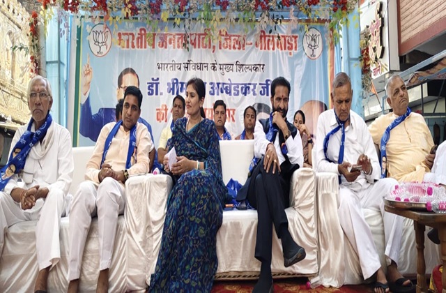 भीलवाड़ा । समानता और सामाजिक न्याय के प्रणेता, भारतीय संविधान के शिल्पकार 'भारत रत्न' बाबा साहेब डॉ. भीमराव अंबेडकर की 135वीं जयंती भाजपा जिला संगठन द्वारा हर्षोल्लास के साथ मनाई गई। बाबा साहेब की मूर्ति पर माल्यार्पण के पश्चात दोपहर में मुख्य समारोह कपासन विधायक अर्जुनलाल जीनगर, राजसमंद विधायक दीप्ति माहेश्वरी के मुख्य आतिथ्य में आयोजित हुआ। अध्यक्षता जिलाध्यक्ष प्रशांत मेवाड़ा ने की एवं सान्निध्य पूर्व सांसद सुभाष बहेडिया, पूर्व विधायक विट्ठल शंकर अवस्थी एवं वरिष्ठ नेता पेंटर सूरज का रहा।