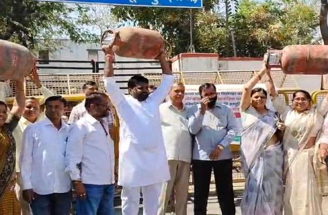 गैस सिलेंडर के साथ किया विरोध प्रदर्शन
