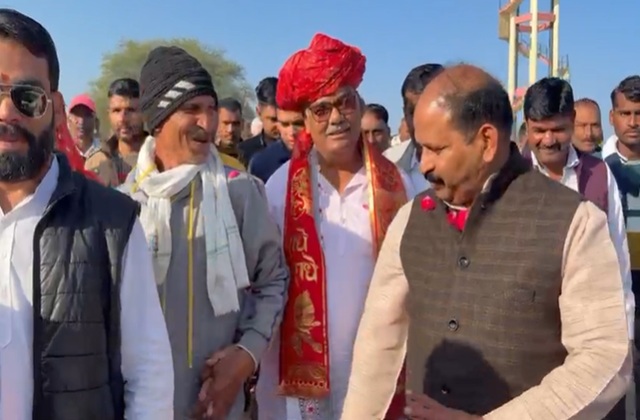 डोबड़ा बना ग्राम पंचायत, विकास रथ के साथ पहुंचे मंत्री मदन दिलावर; 51 फीट साफा और पुष्पवर्षा से हुआ भव्य स्वागत