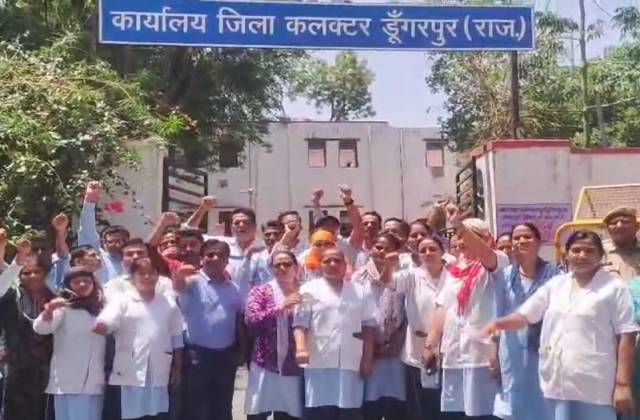 डूंगरपुर में नर्सिंग पद खत्म करने के विरोध में प्रदर्शन, कलेक्ट्रेट पर सौंपा ज्ञापन