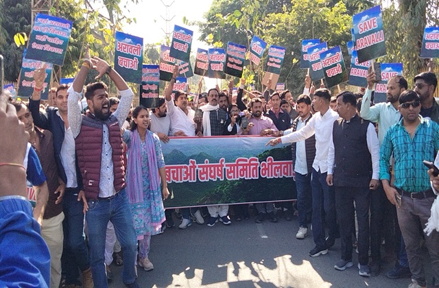 भीलवाड़ा । प्रदेश भर में इन दिनों अरावली पर्वत माला बचाओ की गूंज गूंज रही है भीलवाड़ा में भी लगातार इसके लिए आमजनों द्वारा विरोध प्रदर्शन किए जा रहे है। अरावली बचाओ संघर्ष समिति सहित अलग अलग संगठनों के बैनर तले भीलवाड़ा जिला कलेक्ट्रेट कार्यालय के बाहर पर्यावरण प्रेमियों ने विरोध प्रदर्शन किया। प्रदर्शन के बाद अतिरिक्त जिला कलेक्टर को राष्ट्रपति के नाम ज्ञापन दिया गया। प्रदर्शन से पहले सूचना केंद्र चौराहे से जिला कलेक्ट्रेट तक विरोध रैली भी निकाली गई। जिसमें अरावली मामले को लेकर विरोध दर्ज करवाया गया।