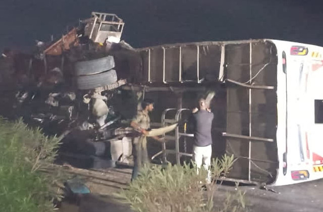 कोटा में स्लीपर बस डिवाइडर फांदकर पलटी, 3 की मौत, 23 घायल; गैलरी में भी सवारियां भरी थीं