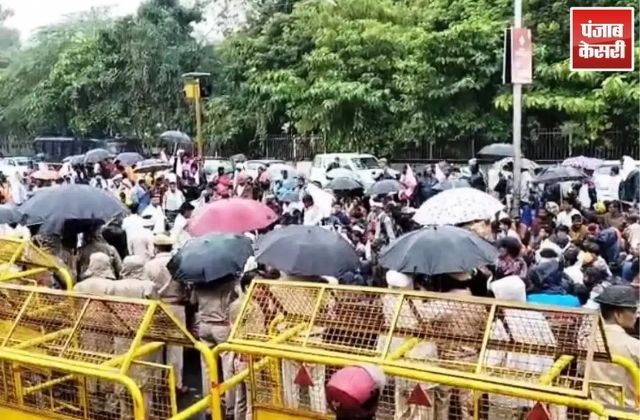 कलेक्ट्री परिसर में भारी पुलिस बल तैनात रहा। प्रदर्शनकारियों ने पुलिस प्रशासन के खिलाफ जमकर नारेबाजी की।