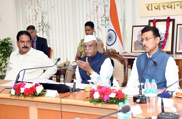 जयपुर, 31 अक्टूबर। राज्यपाल हरिभाऊ बागडे ने पूर्व सैनिकों, वीरांगनाओं एवं उनके आश्रितों के कल्याण से संबंधित लंबित निर्णयों पर सकारात्मक सोच रखते हुए त्वरित कार्य किए जाने के निर्देश दिए हैं। उन्होंने पूर्व सैनिकों के लिए जयपुर में वृद्धाश्रम, जोधपुर में एकीकृत परिसर और विद्यालय एवं सार्वजनिक स्थलों का नामकरण बलिदानी योद्धाओं के नाम पर किए जाने की समयबद्ध नीति पर सिद्धान्त स्वीकृति प्रदान की है।
