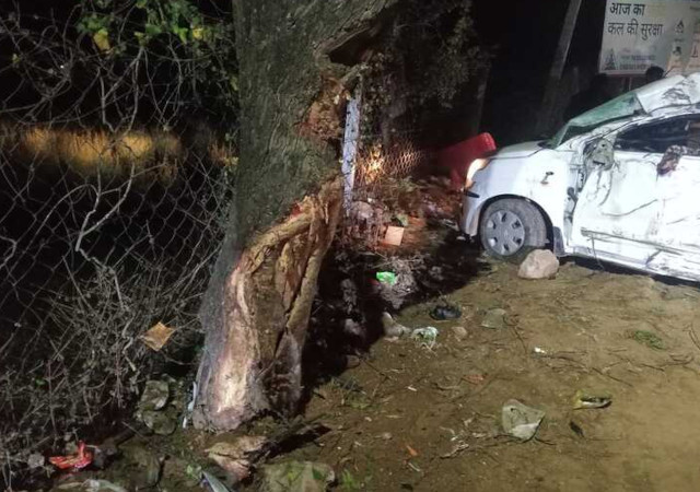 पुलिस का अनुमान है कि ड्राइवर को झपकी आने के कारण कार अनियंत्रित होकर सड़क किनारे पेड़ से टकराई।