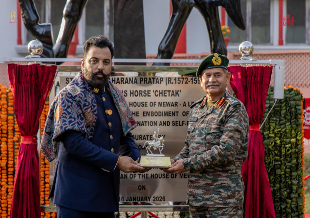 उदयपुर। मेवाड़ की शौर्य, सेवा और परंपरा को एक बार फिर राष्ट्रीय स्तर पर गौरवपूर्ण पहचान मिली है। भारतीय सेना प्रमुख (चीफ ऑफ आर्मी स्टाफ) जनरल उपेंद्र द्विवेदी ने मेवाड़ के पूर्व राजपरिवार के सदस्य श्रीजी हुजूर डॉ. लक्ष्यराज सिंह मेवाड़ को समाज सेवा के क्षेत्र में उनके उत्कृष्ट और अनुकरणीय योगदान के लिए भारतीय सेना की ओर से विशेष सैन्य पुरस्कार प्रदान कर सम्मानित किया।